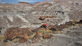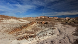 Pour notre dernier jour à Petrified Forest National Park, nous décidons de retourner explorer les badlands d’une section située au nord du parc, et appelée Black Forest. Nous avons « effleuré » cette section lorsque nous sommes allés voir Onyx Bridge mais nous avons encore quelques kilomètres carrés à explorer. Autant dire qu’à la fin de la journée il restera encore quelques dizaine de kilomètres carrés à explorer…