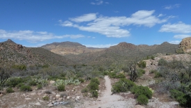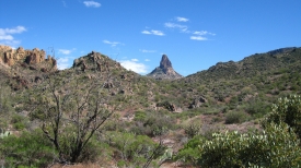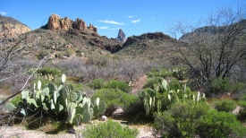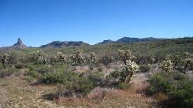 Au loin, le Weavers Needle, vu hier depuis le Peralta Trail, mais de l’autre côté.