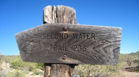 Le point de départ est le First Water Trailhead. À remarquer que nous avions initialement nommé à tort ce billet First Water Trail, et que nous avons corrigé le nom par la suite, en 2017.