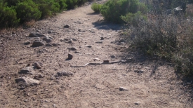 Mister Snaky nous barre le chemin et n’est vraiment pas pressé. Nous attendons quelques minutes que Monsieur veuille bien libérer le sentier. Un caillou jeté en sa direction (mais sans le toucher bien sûr) l’aide dans sa démarche !