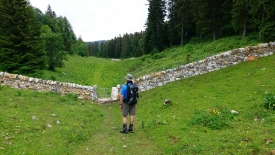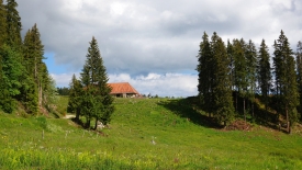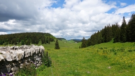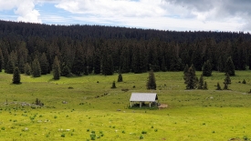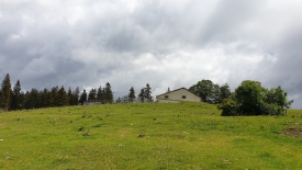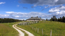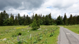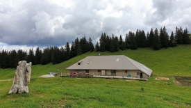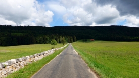 Nous arrivons à La Petite Chaux, au terme d’une belle petite grimpette qui ne prend même pas la peine de zigzaguer pour adoucir la pente.