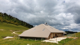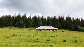 Les portes du chalet Le Couchant sont fermées. Comme c’est l’heure de la sieste nous n’osons pas interpeller le berger. Surtout en l’absence du panneau qui annonce la vente de fromage d’alpage.