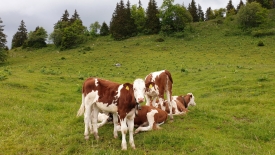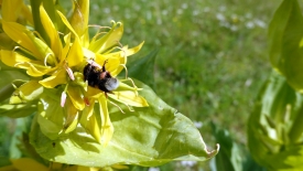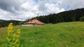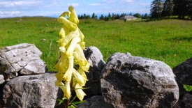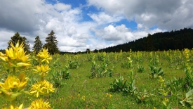 Le pré du Crot est envahi par la gentiane jaune. C’est dommage certes, car elle réduit le volume d’herbe à pâturer mais lorsqu’elle est en fleur, elle donne un joli relief au pâturage.