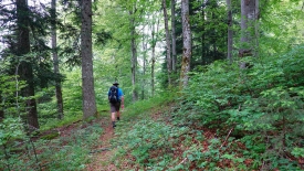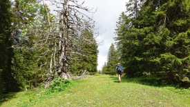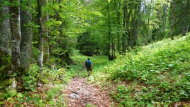 Nous descendons de notre perchoir par la Combe gelée, par un sentier qui a de la peine à se maintenir, envahi par les pétasites.