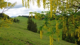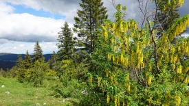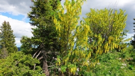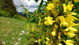 Nous marchons sur la route et remarquons pour la première fois l’exubérance des cytises. Ils sont partout. C’est très beau, même si nous les trouvons un peu envahissants.