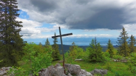 Nous remarquons pour la première fois une croix, la croix du Mont Pelé, devrais-je dire.