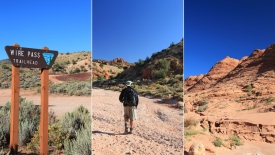 Plusieurs voitures (5 ou 6) sont déjà là lorsque nous arrivons au parking du Wire Pass, après avoir parcouru plus d’une dizaine de kilomètres sur la House Rock Valley Road, une piste assez caillouteuse.