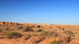 Après Strike Valley Overlook et Saddle Arch, nous sommes donc revenus à la voiture pour manger le reste de la pizza de la veille, que nous avons réchauffé sur le capot de la voiture. Enfin repus, nous reprenons la route sur le Burr Trail pour nous attaquer à la descente.