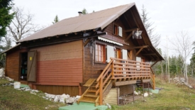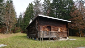 Or donc, oui, sans surprise donc, de la fumée s’échappe de la cheminée. Les fenêtres entre-ouvertes laissent entendre des voix. Nous passons de l’autre côté, parlant nous-même à haute voix histoire de ne surprendre personne. La porte s’ouvre et un monsieur en sort. Nous le saluons et le questionnons sur l’origine du chalet. Il a été construit dans les années 1950, comme la plupart des chalets privés de la région.