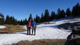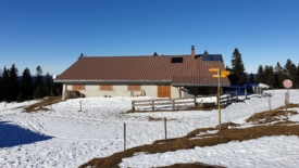 Devant le chalet, nous croisons un couple avec un enfant qui nous demande par où passer pour effectuer une boucle pour revenir au Marchairuz. Stefano leur indique le sentier. Vue l’heure tardive , la meilleure option aurait été de revenir sur leur pas. Espérons que tout se passe bien.