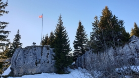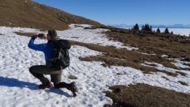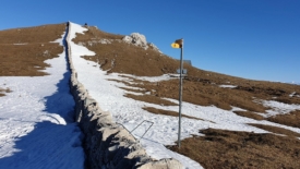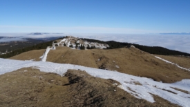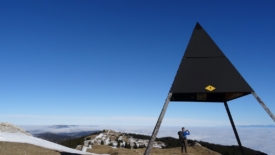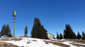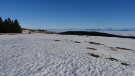 Sur la photo ci-dessous, il faut remarquer plusieurs choses : un petit bout de la chaîne des Alpes, le point géodésique, un pan du toit du couvert et enfin le tourniquet qui a été mis au repos pour l’hiver.