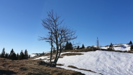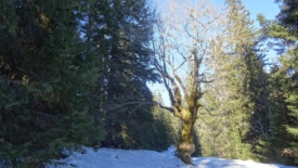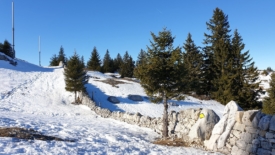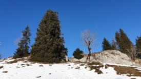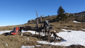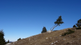 Nous descendons encore, jusqu’à arriver dans une petite combe qui répond au doux nom Des Rochettes. Nous pique-niquerons près de l’arbre que nous aimons beaucoup photographier, été comme hiver. Même si, en hiver, dénué de tout feuillage, il est encore plus photogénique.