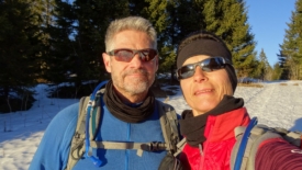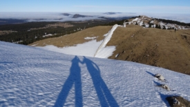 Hier, nous avons été très sages pour le passage à l’année 2019. Couchés un peu après minuit, nous nous levons sous le brouillard. Un rapide coup d’œil sur l’application météo de nos téléphones confirme qu’il fait beau sur les crêtes. En arrivant à Saint-George nous sommes toujours dans le brouillard. Il nous faut monter presque au niveau du Sapin à Siméon pour trouver le ciel bleu. Qu’importe, il est bien là.