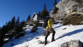 Nous suivons sagement le sentier qui nous fait descendre de 70 mètres environ. Comme la descente est raide, je convaincs Stefano de mettre ses crampons. Quelques mètres plus loin, il me confirme qu’ils sont adoptés.