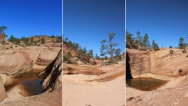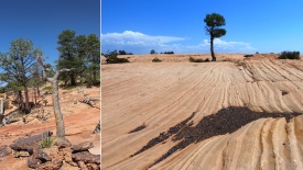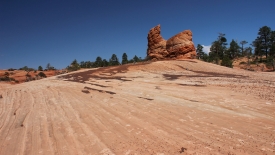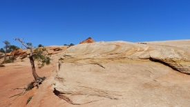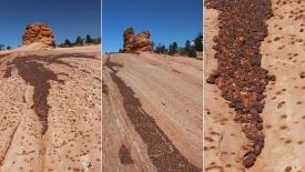 Le slick rock est incrusté de boulettes de sable. L’érosion les libère au fur et à mesure et elles se roulent et se regroupent dans les creux de rocher. Il y a deux ans, j’en avais pris une pour en faire mon totem.