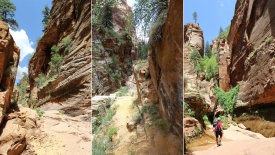 Des nuages commencent à se former à l’horizon, du côté de Zion. Depuis que nous avons quitté la voiture, je scrute l’horizon. De la pluie et nous sommes coincés sur notre parking pour des heures, voire jusqu’au lendemain. Stefano semble également préoccupé.
