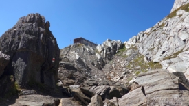 Le terrain est ludique et la taille de la cabane grandit à vue d’œil. Un dernier raidillon, dans un pierrier, nous amène à son niveau.