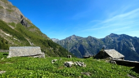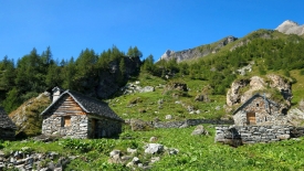 La Capanna delle Creste. Autrefois des étables de l’Alpe d’Antabia, dont l’exploitation a été abandonnée en 1968, elles ont été retapées entre 2004 et 2009.