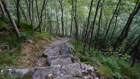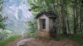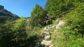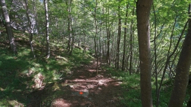 La montée continue allègrement, le sentier longeant parfois, à hauteur respectable, le lit d’un ri que la confédération n’a pas jugé bon de nommer. De temps en temps, je vois Stefano se déporter sur le côté non exposé, d’un pas assuré, sans ralentir. Jusque là tout va bien.