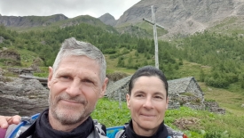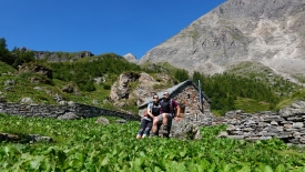 Fiorenzo nous raconte la vie sur les alpages, des « sentiers des chèvres » qui étaient des raccourcis pour descendre plus vite dans la vallée. Il nous explique aussi que les vaches sont devenues plus « costauds » à cause de croisements, et que l’une des conséquence est qu’elle ne pouvaient plus monter par les sentiers trop étroits et raides… Puis il nous a monté la rénovation de la Capanna Fiorasca et nous montre un livre photos qui illustre les travaux. Nous profitons de l’arrivée d’une famille de randonneurs pour nous éclipser. Nous aurions pu l’écouter des heures durant. Cependant, il nous faut descendre, car point d’hélicoptère ne viendra nous chercher pour nous déposer dans la vallée.
