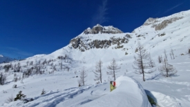 A quelques mètres de la cabane, en allant vers les pentes de la montagne.
