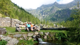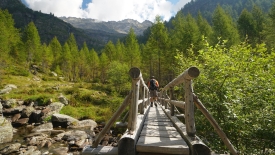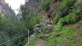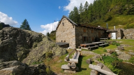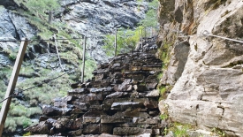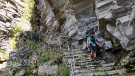 Pour la randonnée du jour, nous nous sommes fixés comme objectif de monter à la Capanna Sovèltra en passant par la gorge du ri della Valle Prato et ses impressionnants escaliers (Scalada Lónga). Nous pousserons jusqu’aux étables du pâturage Sovèltra où nous ferons connaissance avec un troupeau de joyeux moutons.