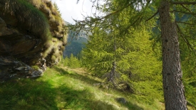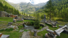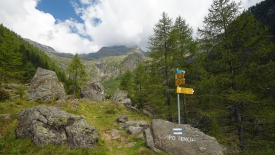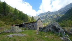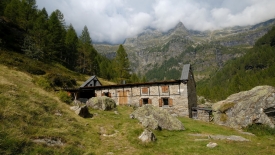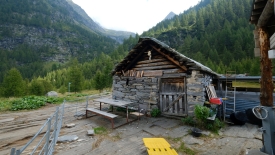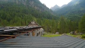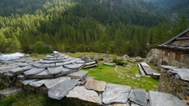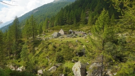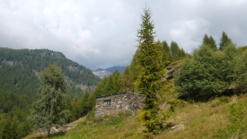 Le sentier évolue dans un pâturage boisé de mélèzes. Nous ne perdons ni gagnons de l’altitude. Le lieu-dit Cascina Nuova est constitué que deux bâtisses un peu en cheni (désordre).