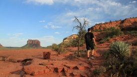 Il est près de 18h lorsque nous arrivons au trailhead. Notre dernière venue à Sedona date de 2007. Depuis, les routes ont été agrandies, des pistes cyclables intégrées et tous les intersections sont maintenant des rond-points. En contrepartie, presque tous les accès aux différents départs de sentier sont devenus payants.