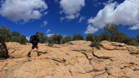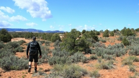 Stefano me propose un arrêt à Cave Tower Ruins. Cave Tower Ruins est un site tout proche de la UT-95. La piste part vers le sud, juste après ou avant à la borne 101 miles.