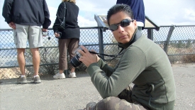 Arrêt photo au bord de la route. Le soleil a de la peine à s’imposer et il fait un froid de canard. Mais la vue est splendide.