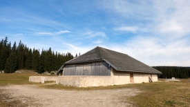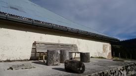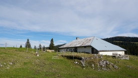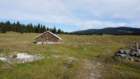 Nous continuons vers le nord, vers Le Brassus. Nous arrivons ainsi au Refuge de la Joratte. Une voiture est garée à proximité et nous n’apercevons qu’un bout de son toit. Des voix nous découragent d’aller le voir de plus près.