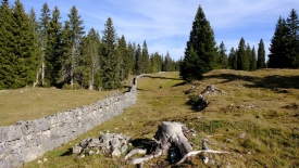 Nous suivons les contours de la Combe des Amburnex. Les murs y sont bien présents.