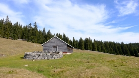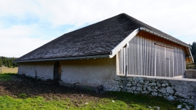 Le Chalet de la Sèche des Amburnex. Récemment reconstruit, à l’identique de sa version originale. Le sable nécessaire au mortier a été fabriqué comme à l’époque, en brûlant la terre végétale. Le toit est recouvert de près de 130’000 tavillons ayant nécessité pour leur pose le même nombre de clous.