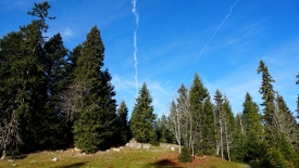 Non loin, un petit couvert, près d’un monticule qui répond au nom de La Plateforme. Le Mont Tendre est au bout de la crête. Stefano me dit que nous n’aurons sans doute pas le temps d’y aller. Mais à tenter une prochaine fois.