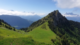 Cette pointe s’appelle La Riondaz. En contrebas, le col du Luissel.