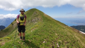 La suite de la balade se continue sur la crête. Parfois si étroite que Stefano s’en éloigne d’un mètre ou deux, dans la pente, pour éviter la vision du néant sur notre droite. Notre prochain objectif est la Chaux de Mont, où arrive la remontée mécanique aperçue plus tôt, celle-là même qui longue les contreforts de la Tour d’Aï.