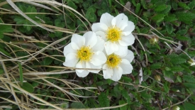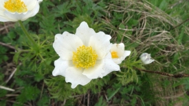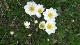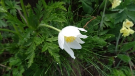 Derrière, la vallée où on distingue un des plans d’eau dont je parlais précédemment. Les anémones pulsatilles bordent le chemin.
