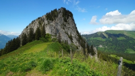 Au détour du chemin, la Tour d’Aï se dévoile : un énorme bloc rocheux, incliné.