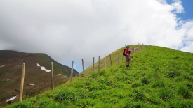 La descente se termine et nous traversons les pâturages pentus surplombant le hameau de Luan.