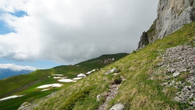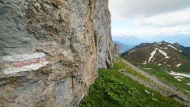 Plutôt que de redescendre par le pré, nous décidons de suivre le sentier qui longe la paroi.