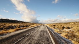 Il a neigé cette nuit et, vu le froid, la neige est restée accrochée à la route. Inutile de préciser que nous roulons très très prudemment.