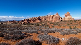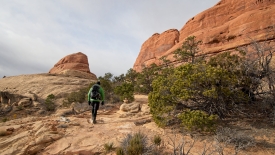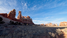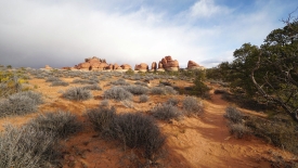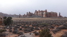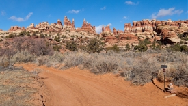Le beau temps nous ramène à l’itinéraire prévu au départ. A savoir rejoindre le Joint Trail trailhead et rentrer en contournant Chesler park, par l’est. Nous revenons donc à l’entrée de Chesler Park pour attraper le sentier.