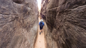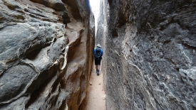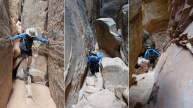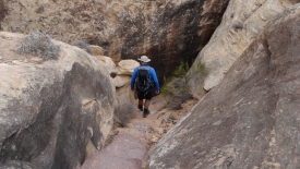 Nous rejoignons le Joint Trail. Les premiers mètres sont une descente abrupte dans un canyon étroit à souhait.