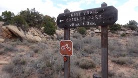 Nous engageons la conversation. Ils habitent Moab et sont définitivement des passionnés de randonnée. Ils font également du VTT en famille, sur les Moab Brand Trails, que nous avons parcourus nous-mêmes en 2012. Magnifique famille, respirant la joie de vivre et l’amour de la nature. Ils campent à Devils Kitchen. Compte tenu de la distance qu’ils ont encore à parcourir pour rentrer, nous sommes certains que les petits ne se feront pas prier pour dormir.