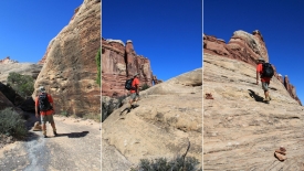 Nous progressons sur du slick rock, terrain très agréable pour marcher tant pour sa stabilité et que pour sa bonne accroche.