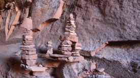 C’est une sorte de grotte, où les touristes, au fil des ans, ont ajouté voire embelli des dizaines et dizaines de cairns.