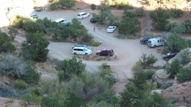 Le jeep trail est tellement étroit qu’il est en sens unique. D’un côté la falaise, de l’autre le vide, il est donc impossible pour deux voitures de se croiser. Il est même impossible de faire demi-tour.