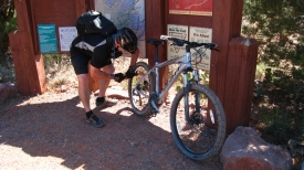 Aujourd’hui, c’est décidé. Nous allons découvrir les sentiers VTT de Sedona (enfin une partie seulement !)