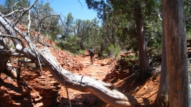 Même combat pour le Rupp Trail et le Cockscomb Trail. Mais nous pouvons ainsi terminer notre échauffement. Échauffement qui pour moi est comme d’hab, un peu (beaucoup) pénible. Moi je suis un diesel, c’est sûr et je peux vous dire que Stefano marche à la Super indice octane 103494. En tout cas, c’est ce que j’en déduis, à la voir partir comme une flèche.