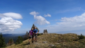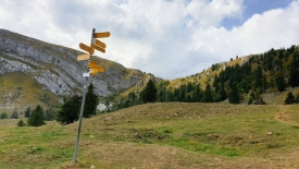 Une photo plus tard envoyée aux frères et sœur du Tessin, nous commençons la descente. Et comme le temps commence à se gâter sérieusement, nous innovons et prenons une des variantes de sentier la plus courte et donc, forcément, la plus raide.